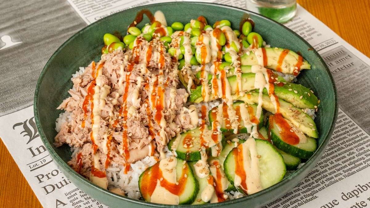риба тон, авокадо, едамаме, краставици, сусам, шрирача сос, домашна майонеза с грейпфрут 370г