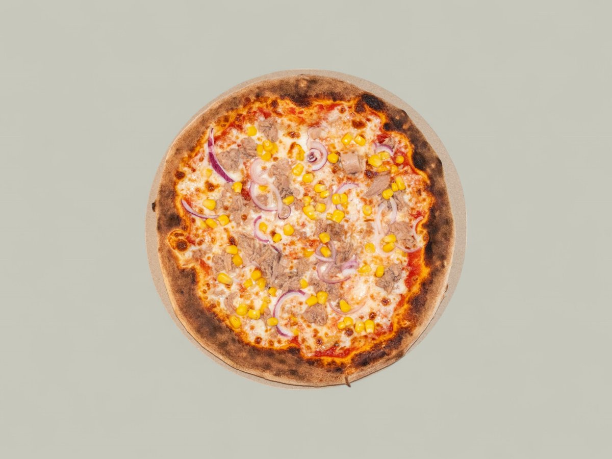 доматен сос, моцарела, риба тон, червен лук, царевица