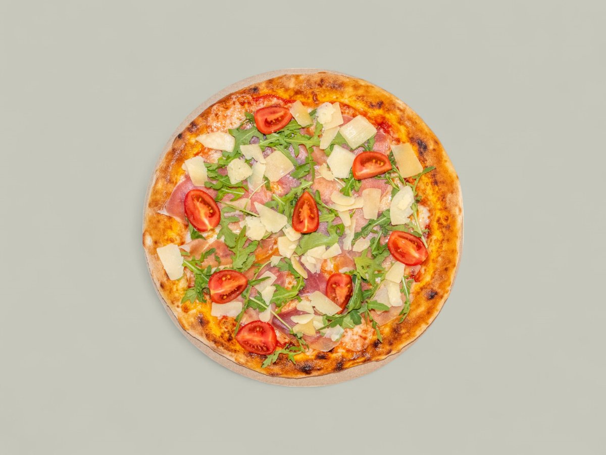 доматен сос, моцарела, прошуто крудо, рукола, чери домати, Пармезан 30см