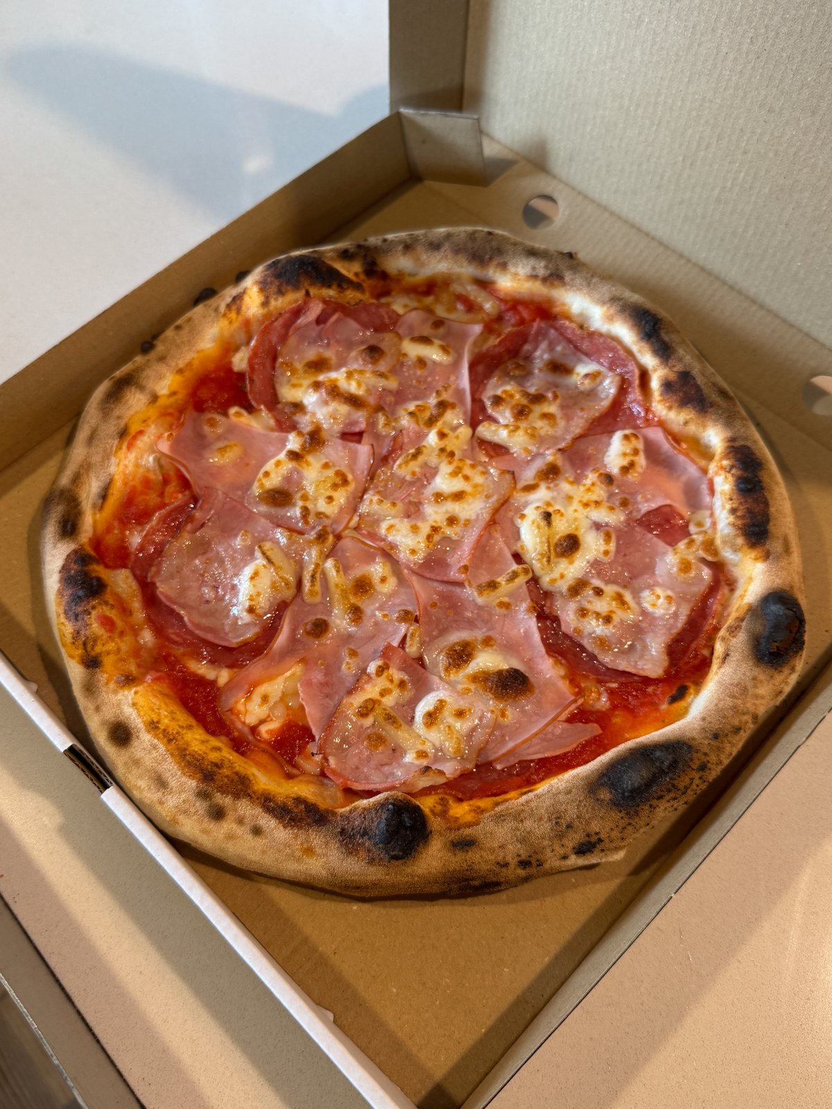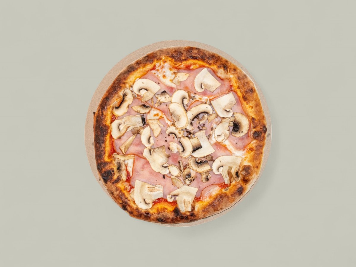 доматен сос, моцарела, прошуто котто (шунка), гъби, риган 30см
