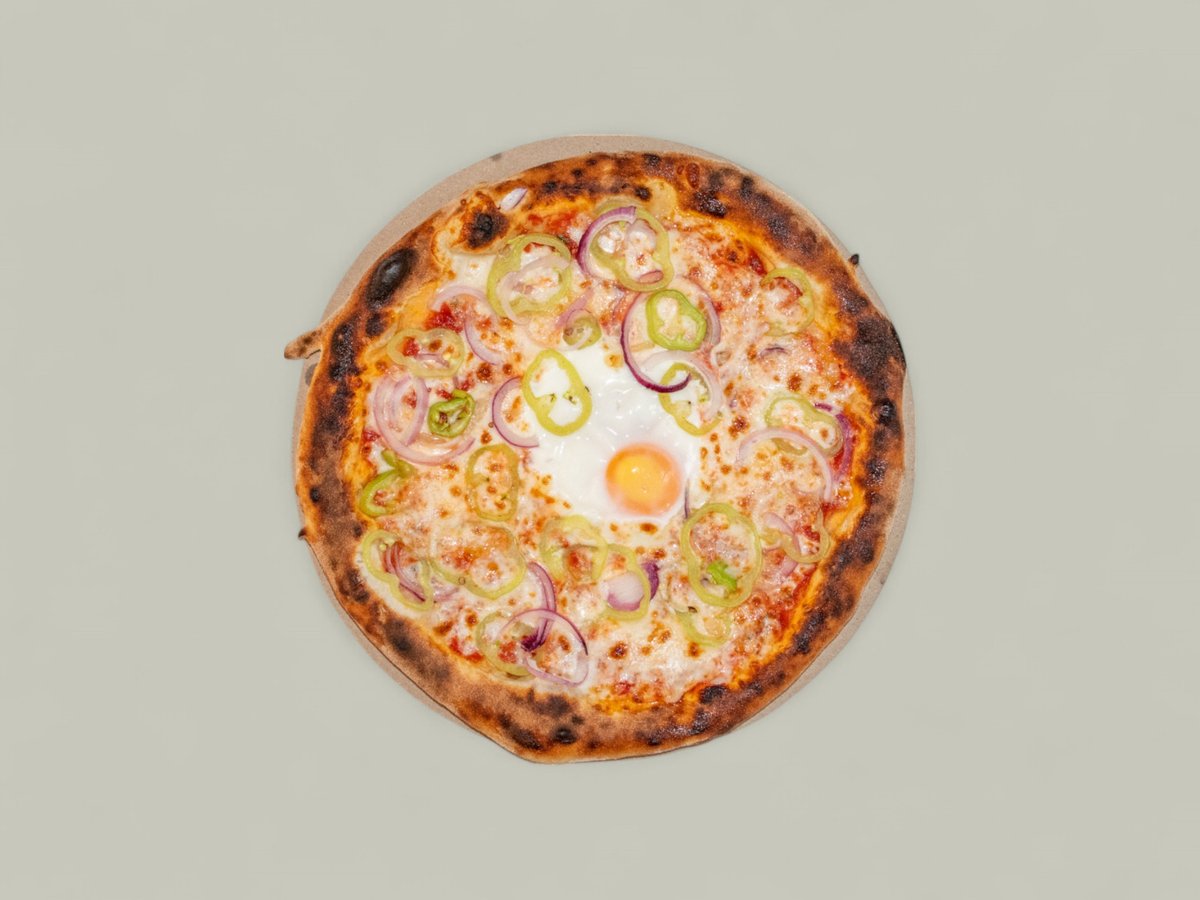 доматен сос, моцарела, лук яйце, чушка, чубрица