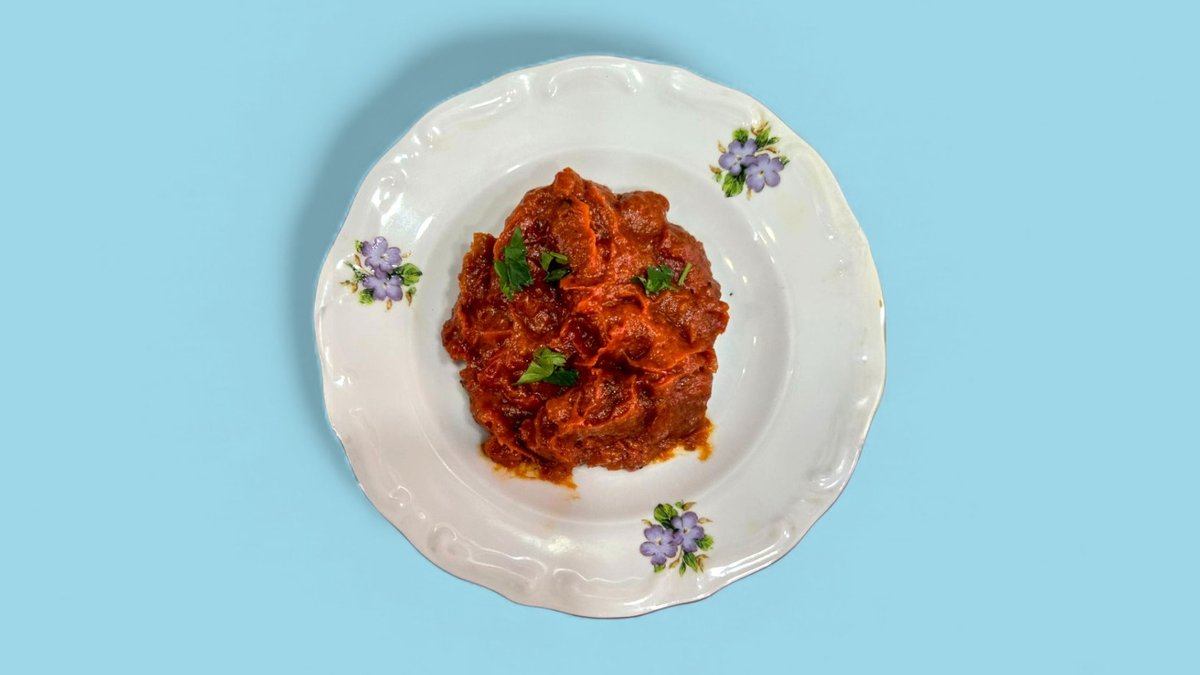 задушено свиндсо месце,лук,морков,чушка,зеле,червен пипер,черен пипер,сол