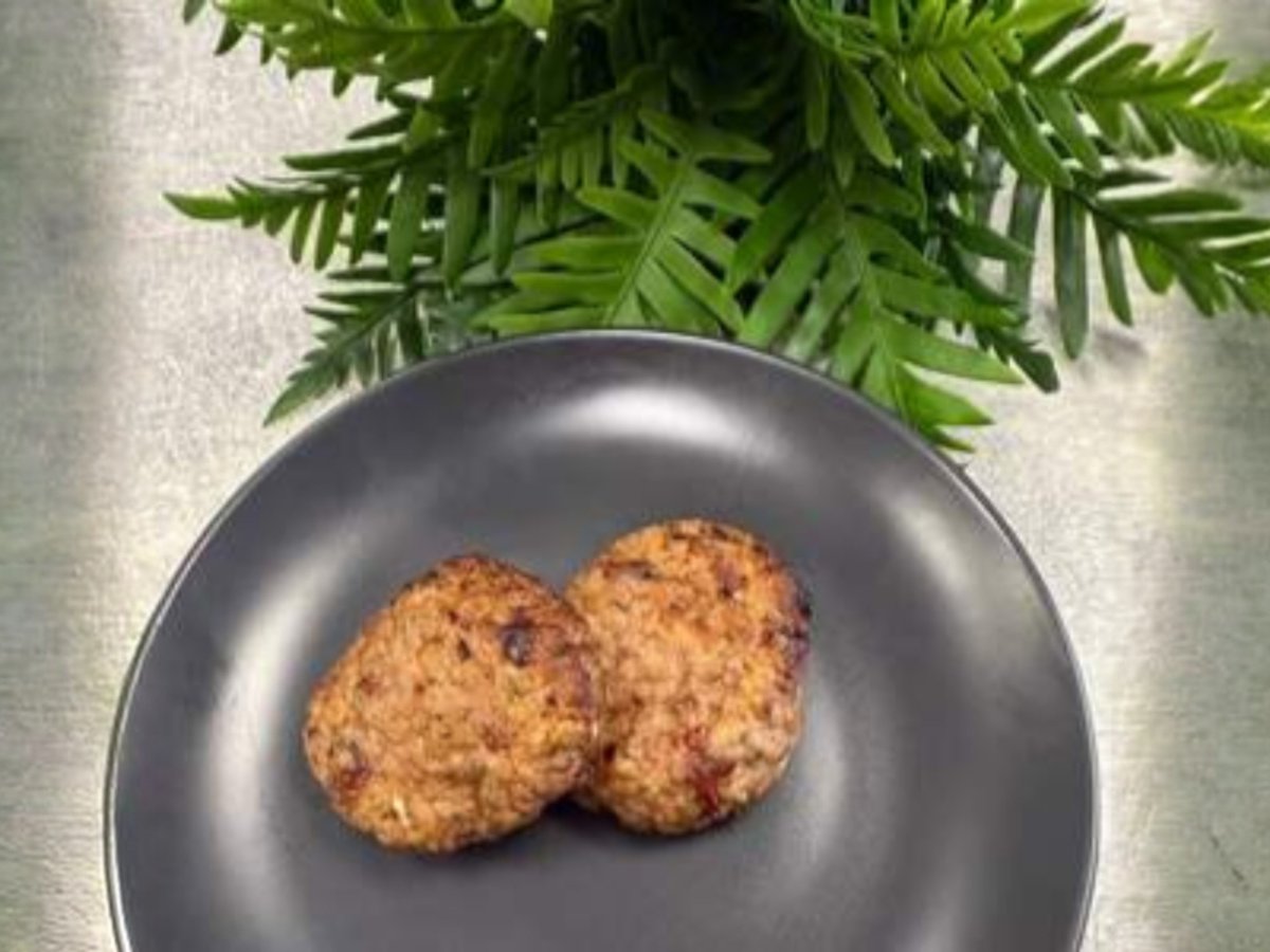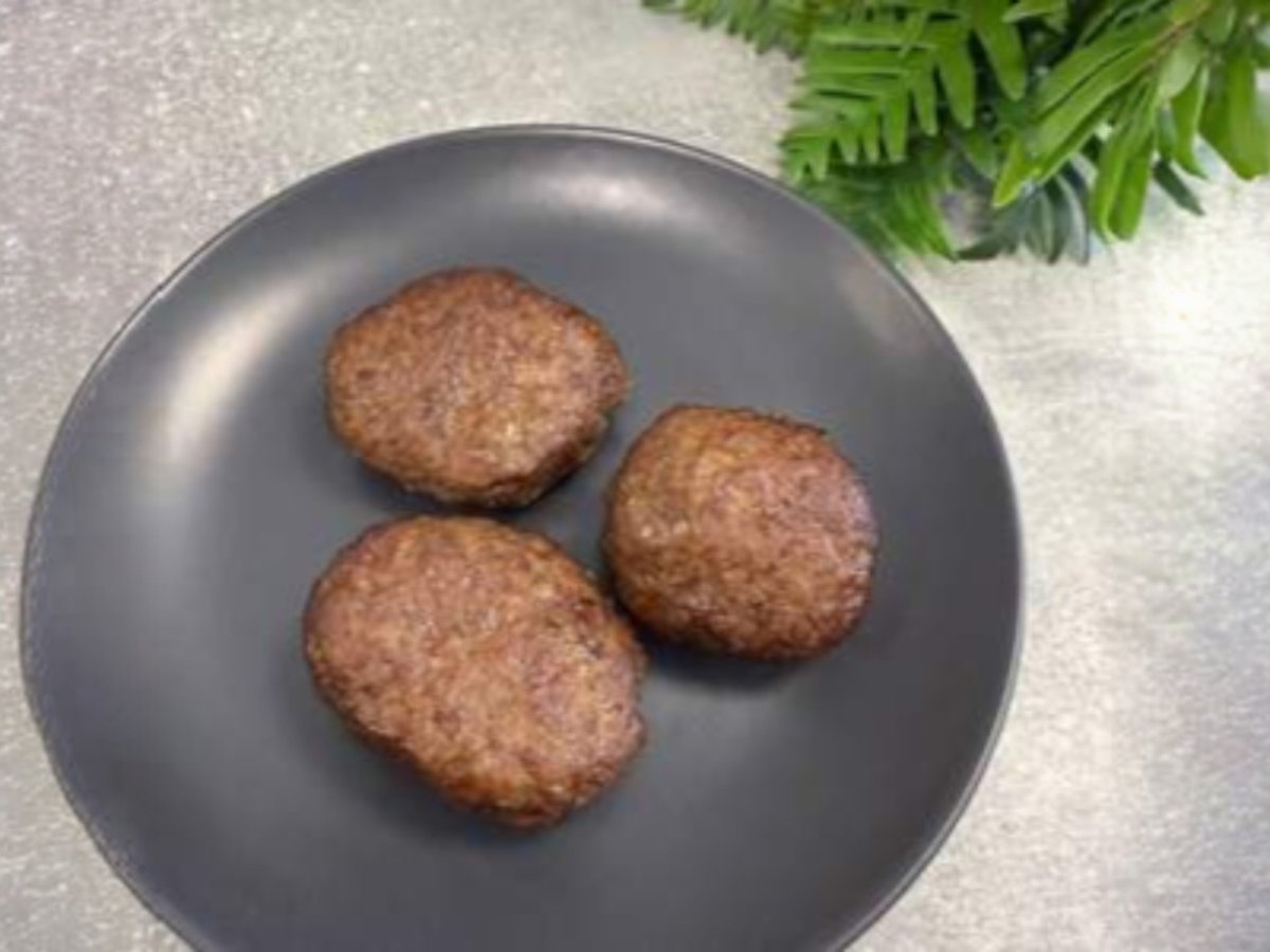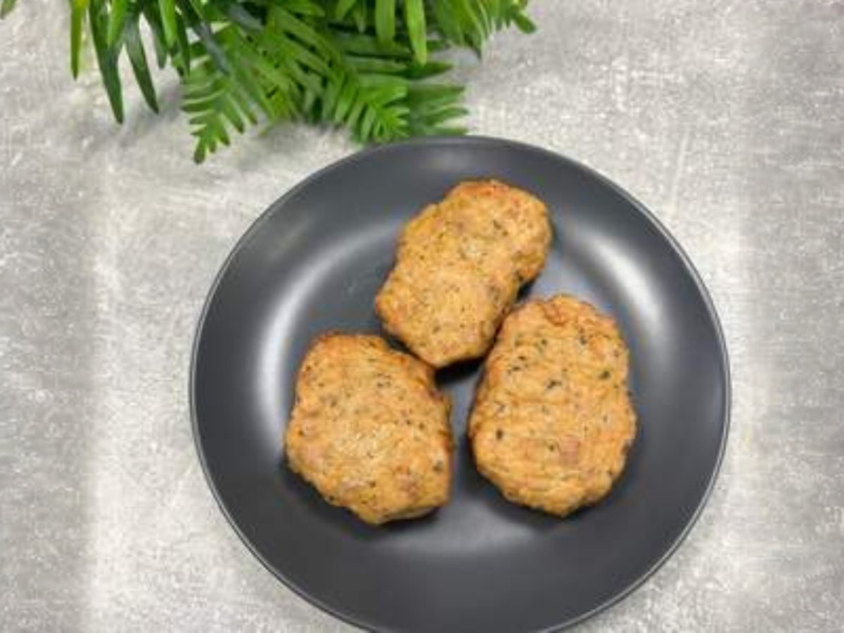 пилешки кюфтенца от бут, продуктът се готви на конвектомат без добавена мазнина на средно ниска температура, за максимално запазване на вкусовите качества 80г