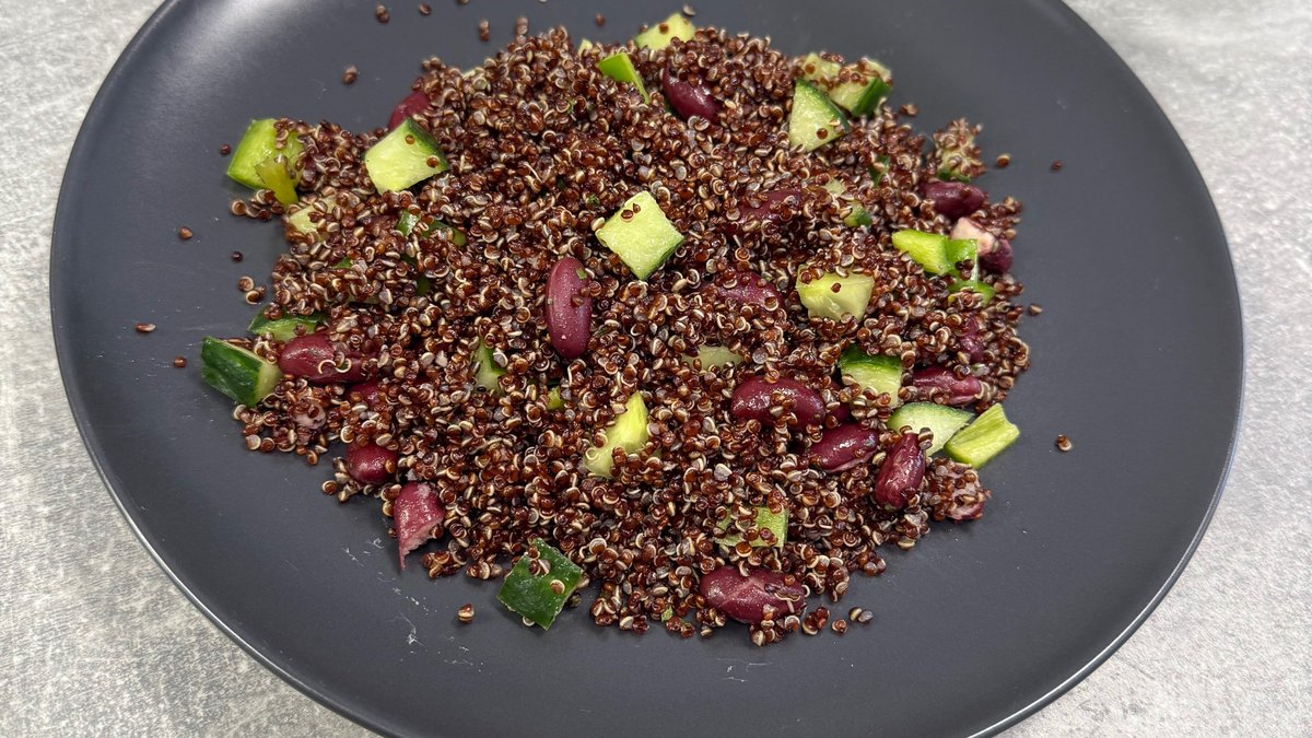 Червена киноа с червен боб и краставица