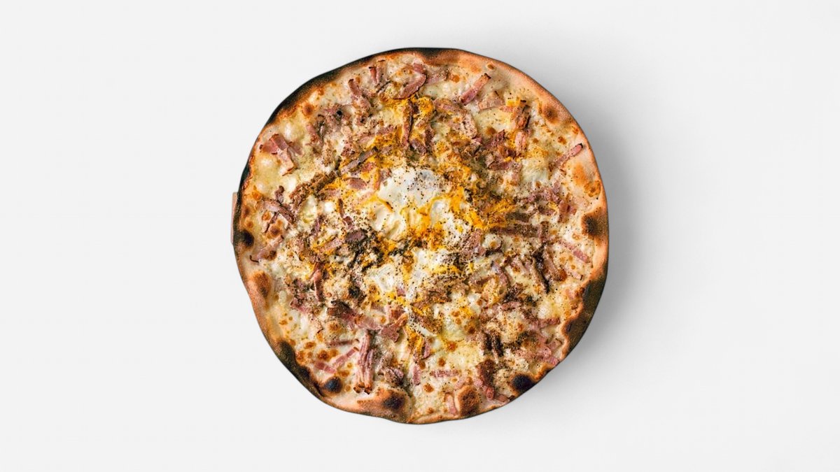 3 дни втасвало тесто (тънко и хрупкаво), сметана, моцарела, бекон, яйце, черен пипер