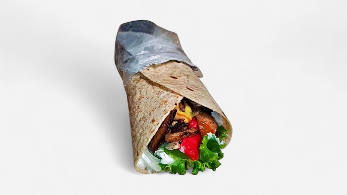 Тортила с 20гр грахов протеин, свинско гиро месо, чедър, дзадзики, домат, айсберг, лук, кетчуп, горчица.