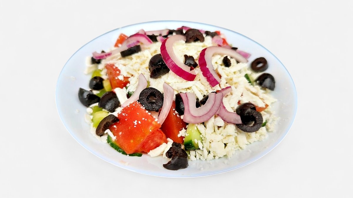 Домати, краставици, чушка, маслина, лук, бяло сирене(смес биволско и краве) 450g