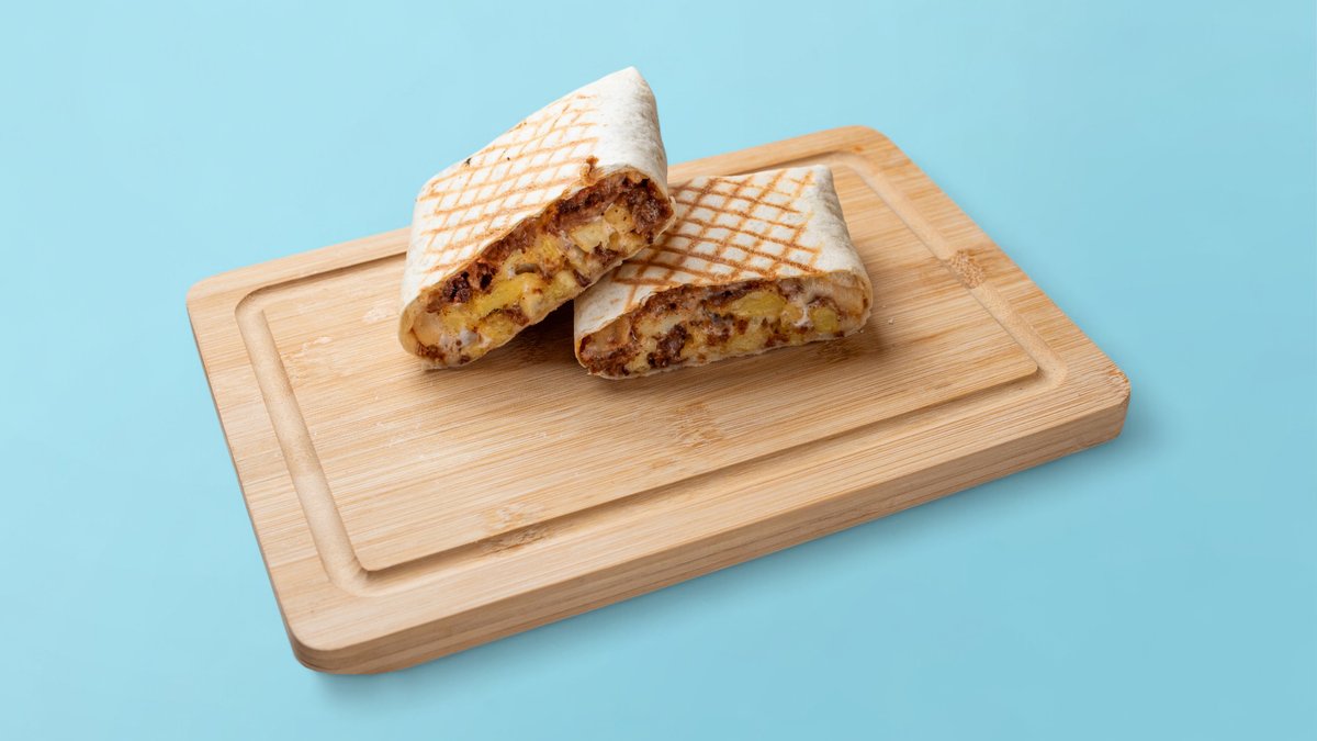 вегетарянско дърпано, сос по избор, пж. лук, пж. картофи, моцарела, сос от френски сирена 500г