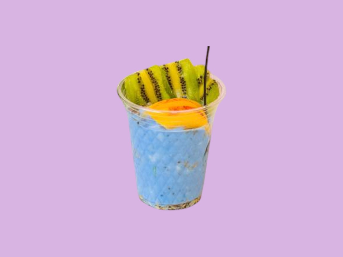 кисело мляко, банани, синя спирулина, чия, гранола, ягоди, боровинки 290г