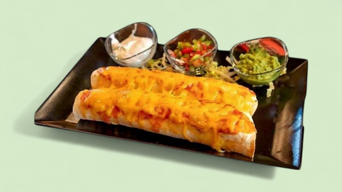 две рула от тортили със запечен Чедър сирене, salsa Pico de Gallo, salsa Verde и избор от нашите предложения за плънка 300г