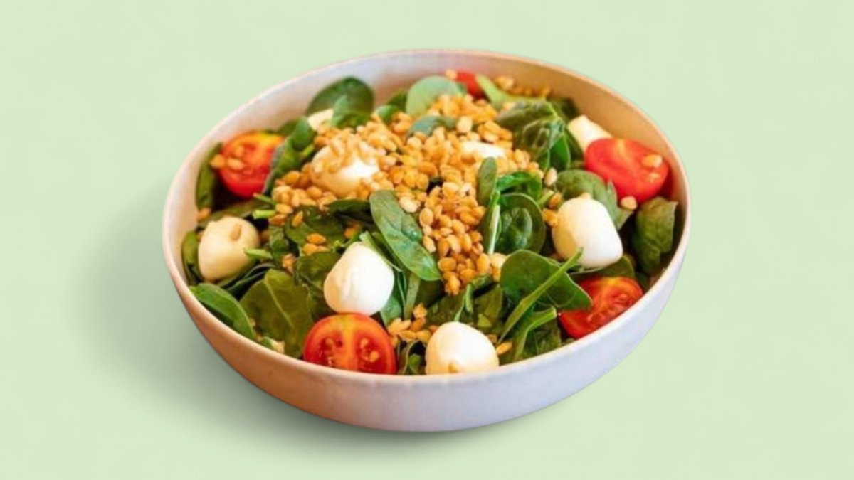 бейби спанак, чери домати, лимец, бейби моцарела, орехи, медено горчичен дресинг 300г