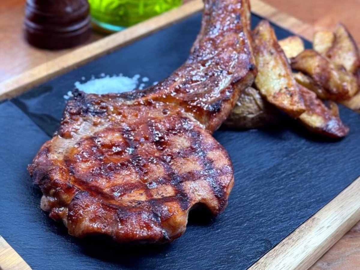 Джъмбо свинска пържола с картофи на кръгчета