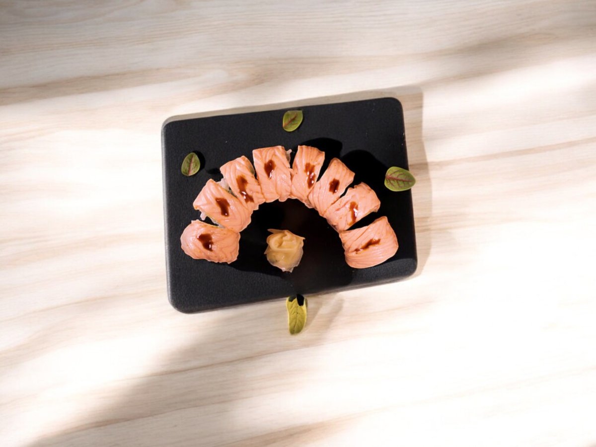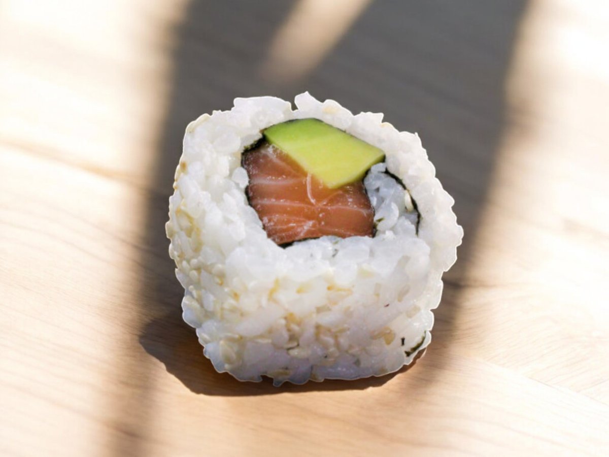 Саке урамаки с печена сьомга, авокадо, унаги сос