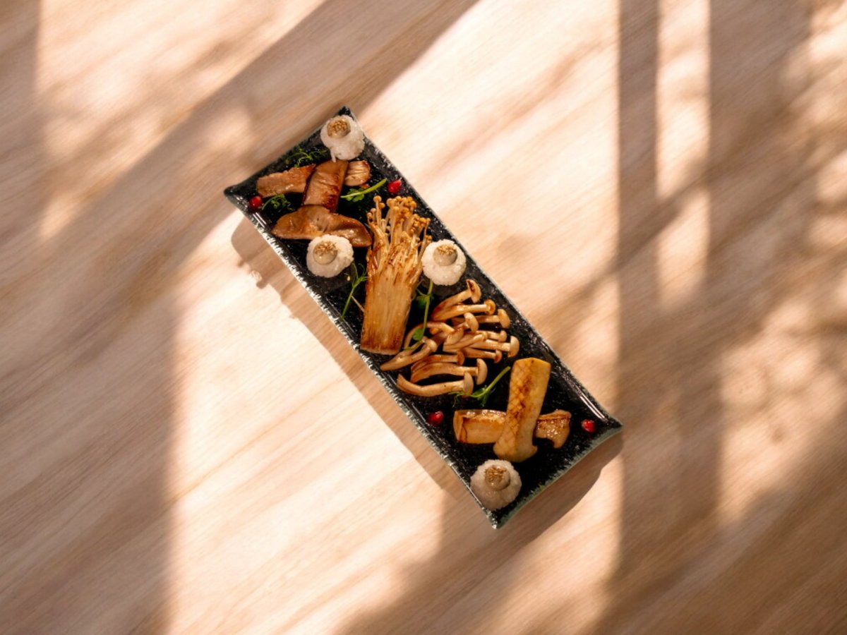 Mодерната японска кухня ни дава възможността да кривнем от правия път на традиционната кухня и нейните стриктни правила и кулинарни практики в посока фюжън. Храната е базирана на японски комбинации от продукти, но е презентирана по съвременен европейски начин. Не се използва бяло брашно, а употребата на мляко, млечни продукти и захар сме свели до пълния минимум. Пресните продукти (зеленчуци, месо) са от малки ферми, а трайните са японски - соев сос, мирин, саке, оризово брашно, темпура, водорасли, червен боб Адзуки. Менюто изготвяме сезонно. Екипът ни се стреми да работи с местни производители и доставчици („Омая Ранч“, „Чифлик Ливади“, „ферма Ярлово“, „Съни фарм – Абланица“, ферма за патешкото месо в с. Бранище и др.), а рибата си набавяме както от Солун, така и най-големите европейски борси за риба. Вината подбираме с нашия екип от сомелиери и включваме етикети от цял свят. Българските производители с които работим са „Дамяница“, „Мараш“, „Боровица“, „Нисово“ и др.
