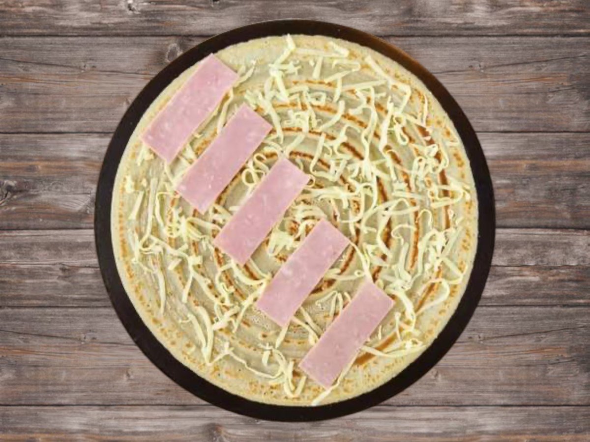 Палачинка с шунка, сирене, топено сирене и домати