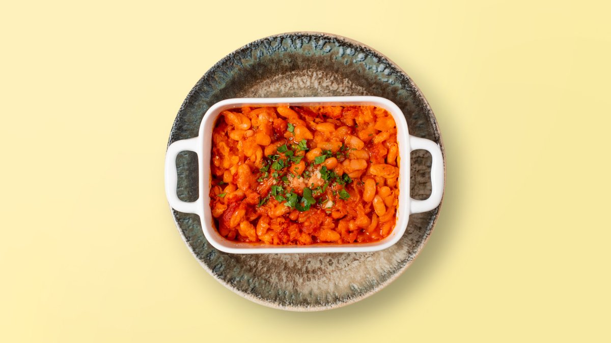 запечен боб на бавен огън по сръбски с чесън и магданоз 1350г