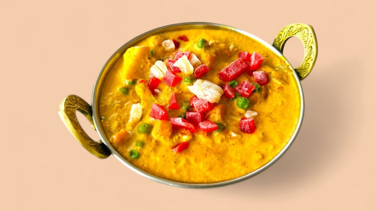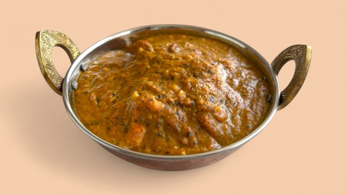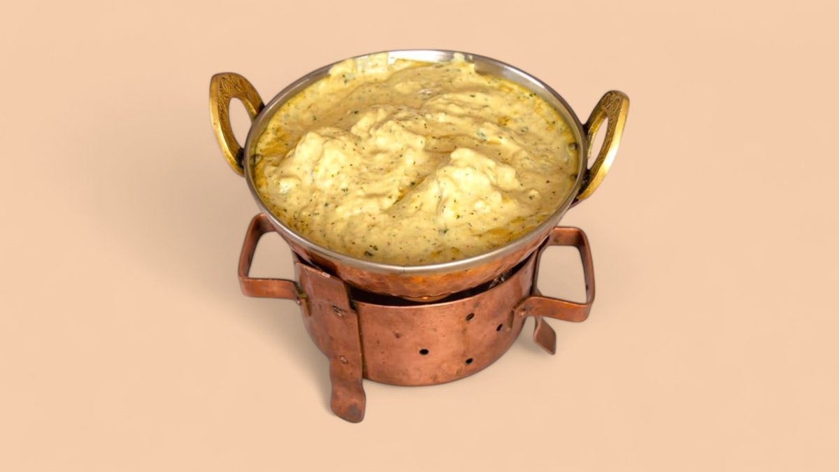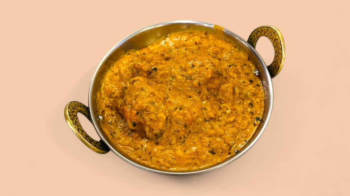 мариновани тандури пилешки късчета, обвити в богат къри сос със сметана и подправки-450г