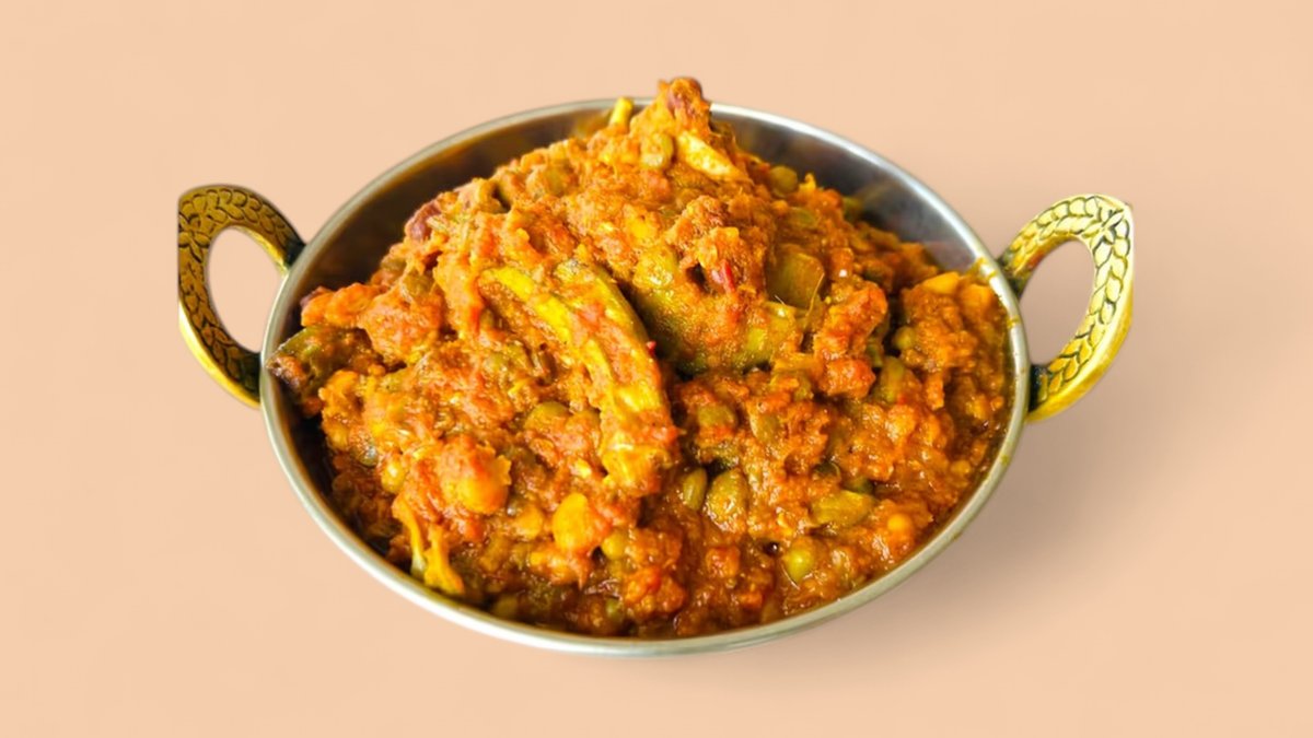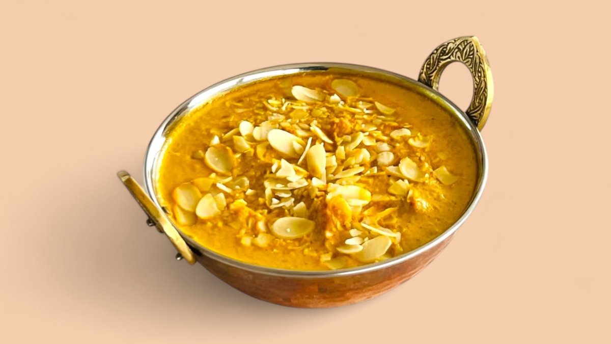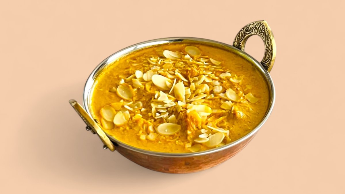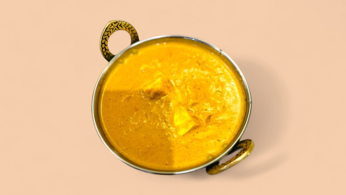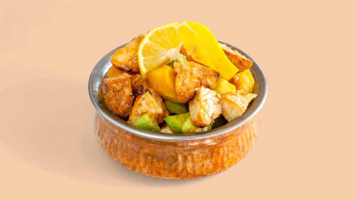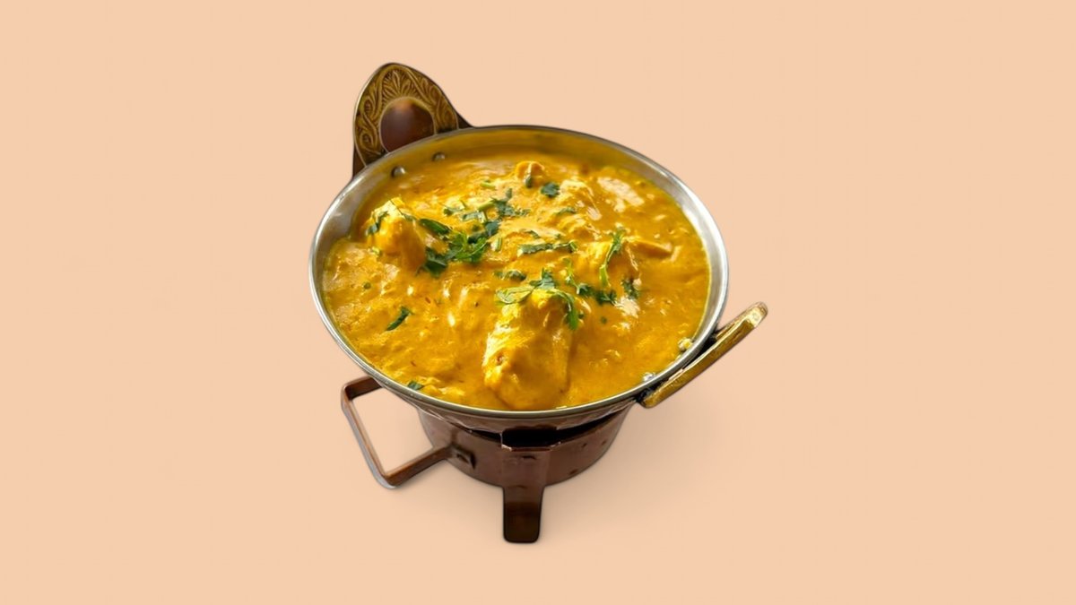 крехко пилешко филе, приготвено със задушен лук, куркума и домати, допълнено със сметана, сладко къри, щипка гарам масала и кориандър - 450г