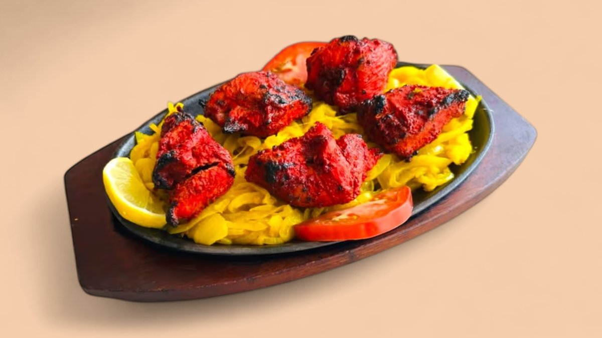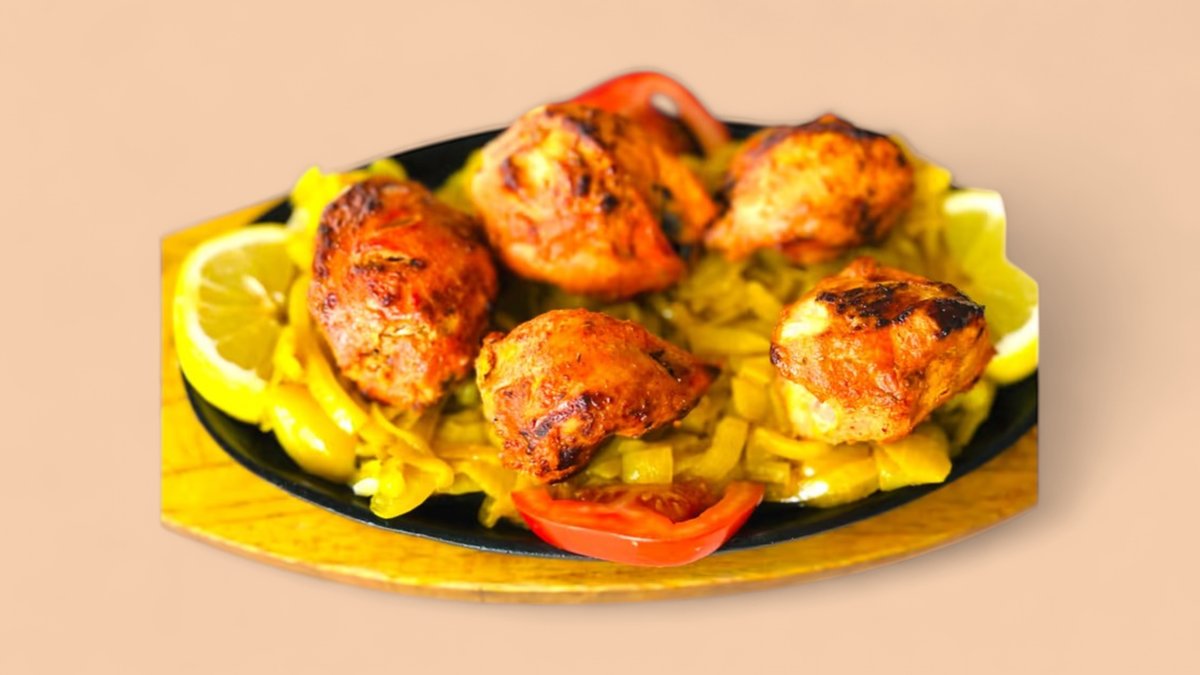 крехки пилешки филенца, мариновани в чеснова паста и ароматни подправки, изпечени на шиш в тандур-400г