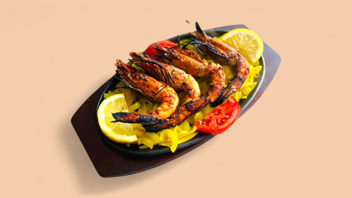четири големи кралски скариди, мариновани в специална смес от подправки и изпечени в тандур 300г