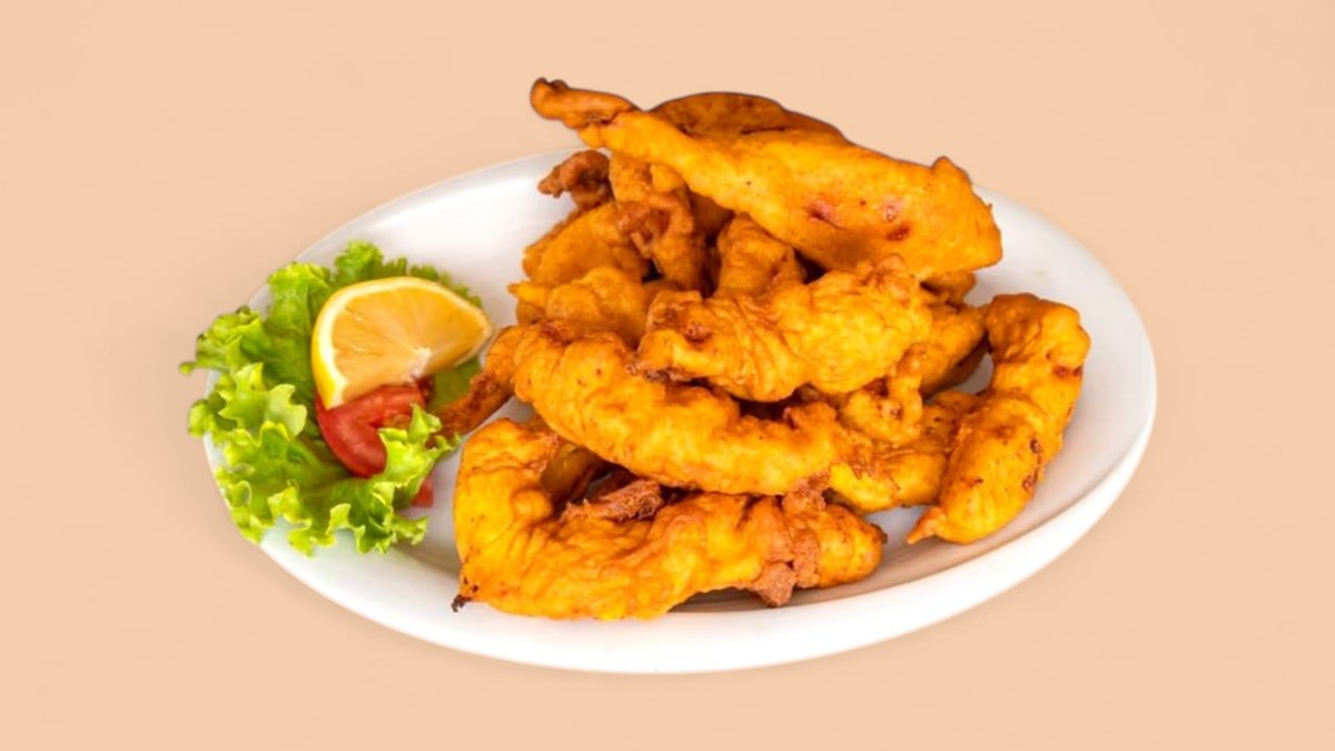крехко пилешко филе, мариновано и панирано с индийски подправки, сервирано отделно с ментов сос 250г