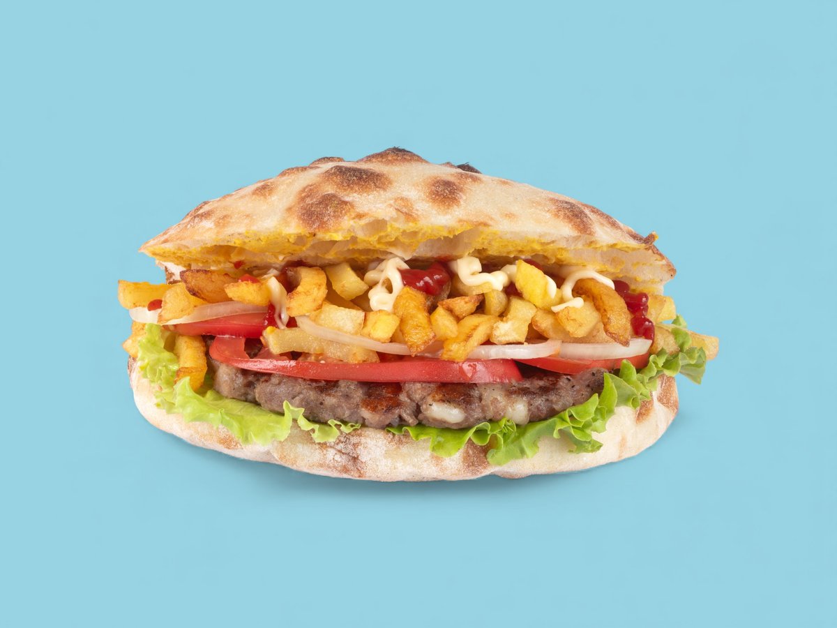 400г - телешко кюфте от Блек Ангъс по наш тертип, ръчно хлебче, свежи зеленчуци, домашни картофки, сос