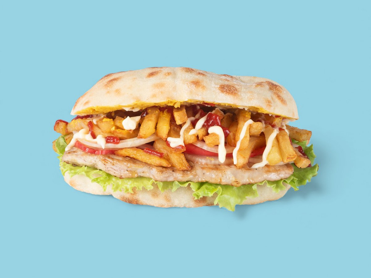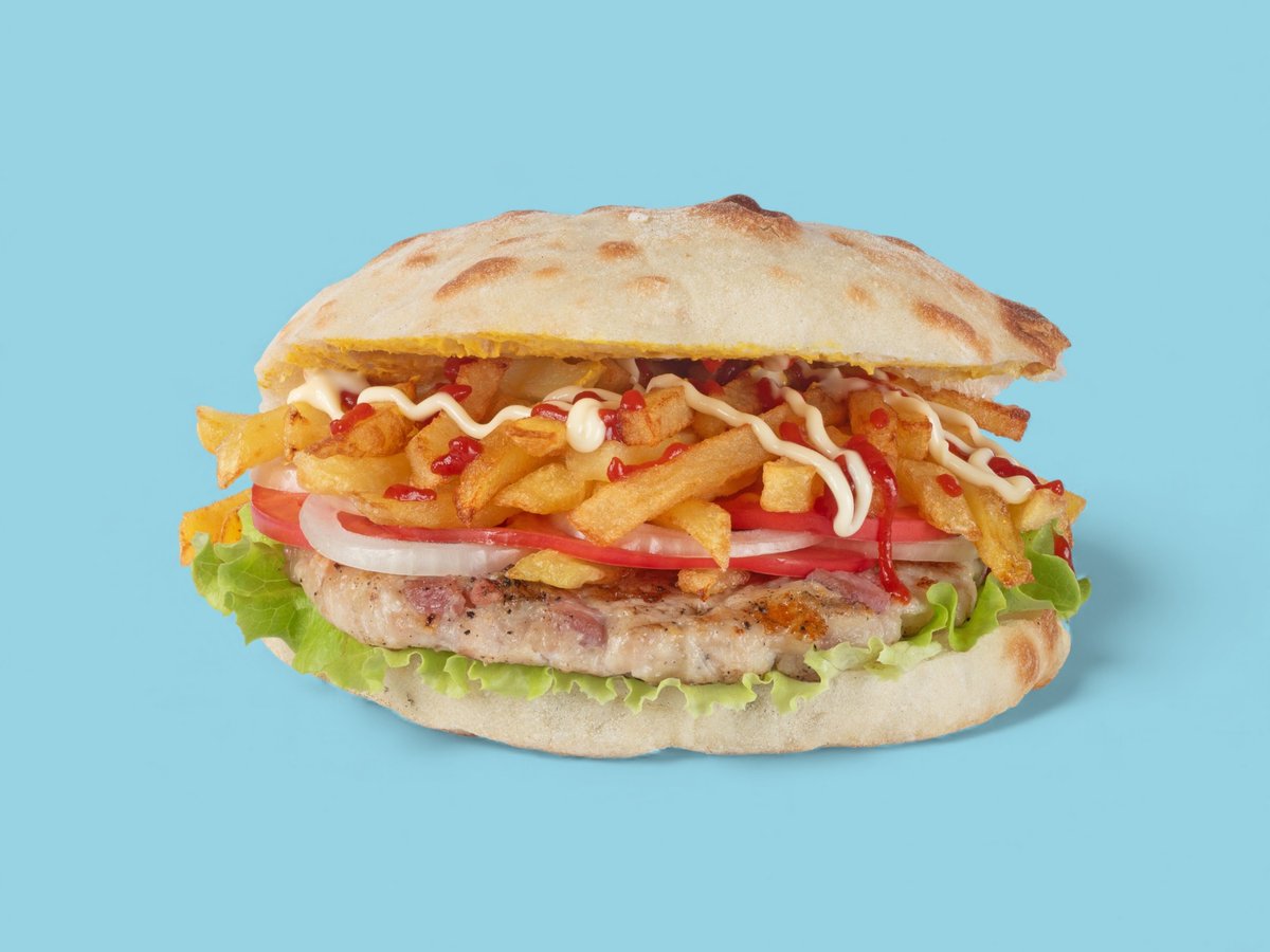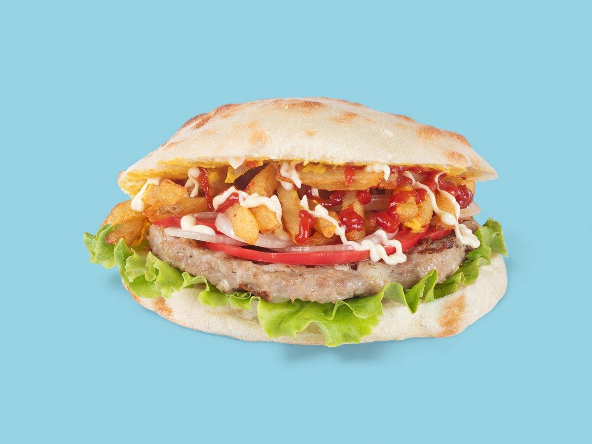 400г- лудогорско пилешко кълцано месо по наша рецепта, ръчно хлебче, свежи зеленчуци, домашни картофки, сос