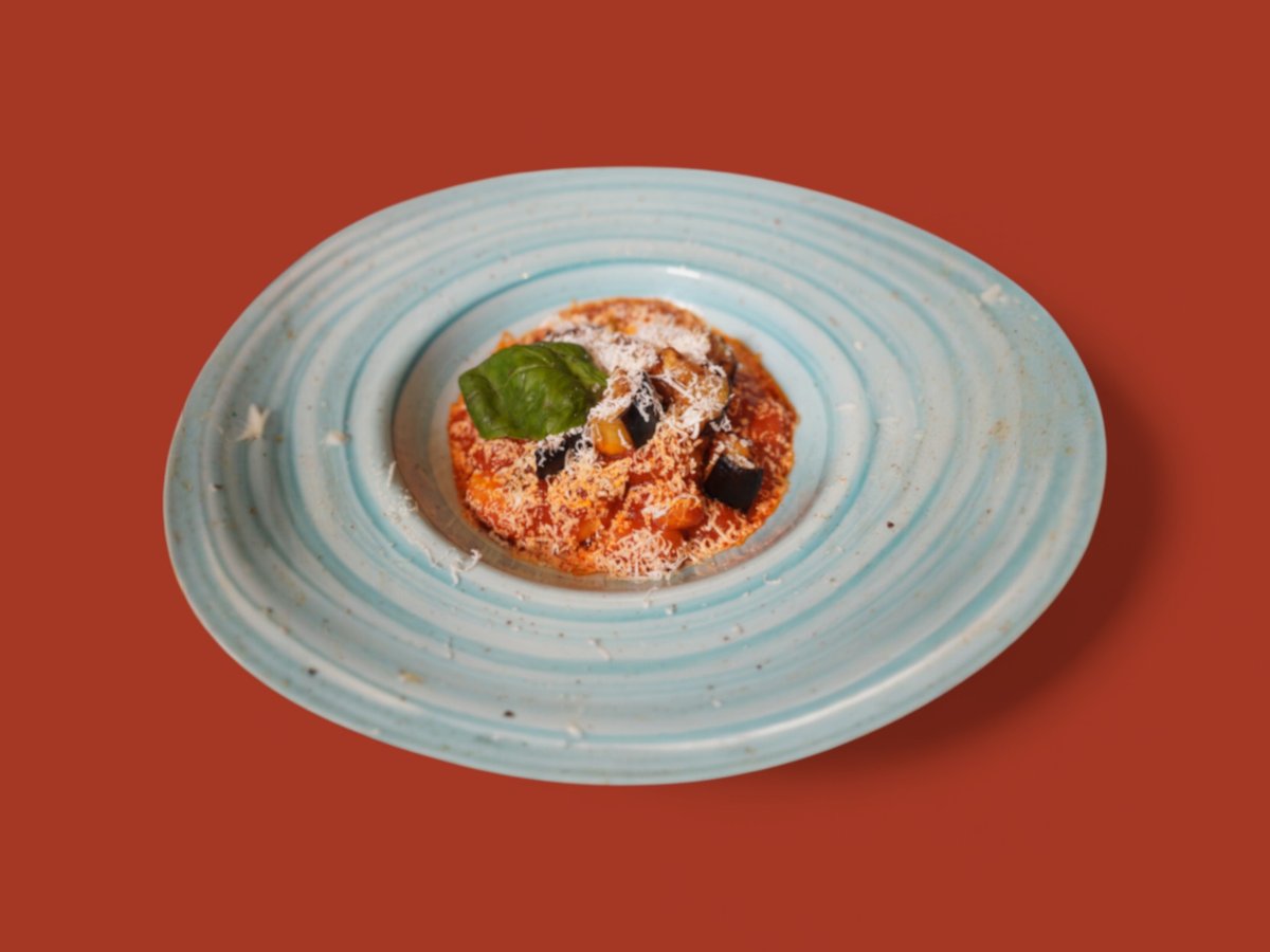 Домашни ньоки с пържен патладжан, осолена рикота и ароматен доматен сос 250г