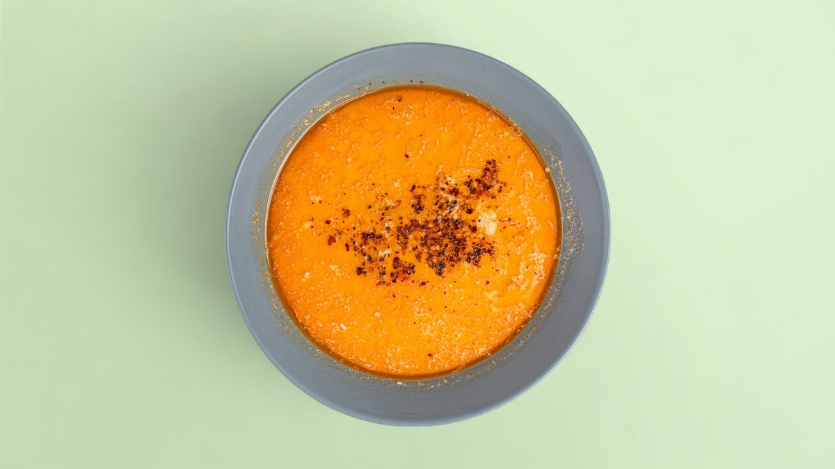 Доматена крем супа с фета сирене и домашно приготвени крутони