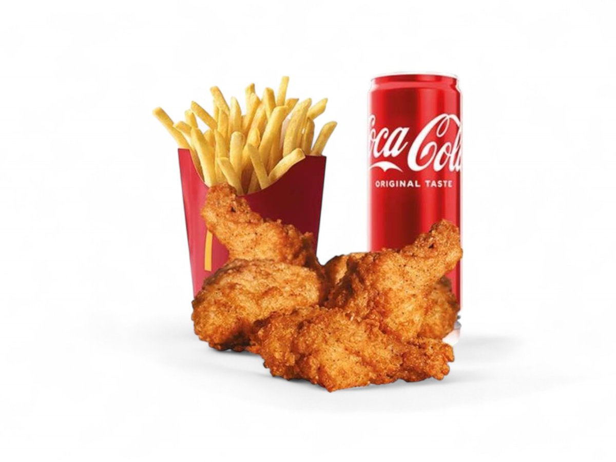 share Box с МакНагетс 6бр. + пилешки крилца 4бр. (пикантен вкус) + 2 малки картофки + 2 сос по избор
