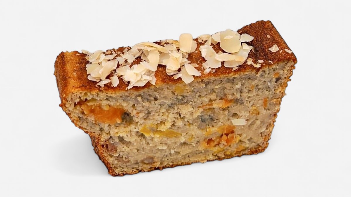 Овесен кейк с ябълки, моркови, банан, сушени кайсии, стафиди. Съдържа яйца и подсладител еритритол (150 гр)