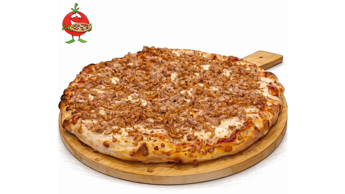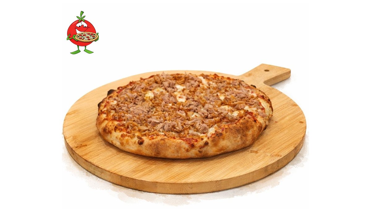 Доматен сос, филе от риба тон, пържен лук, моцарела