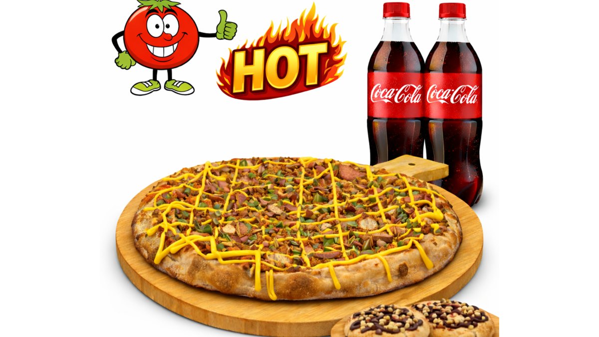 Фамилна пица (850гр)+ 2 бр Кока кола+2 бр шоко пица