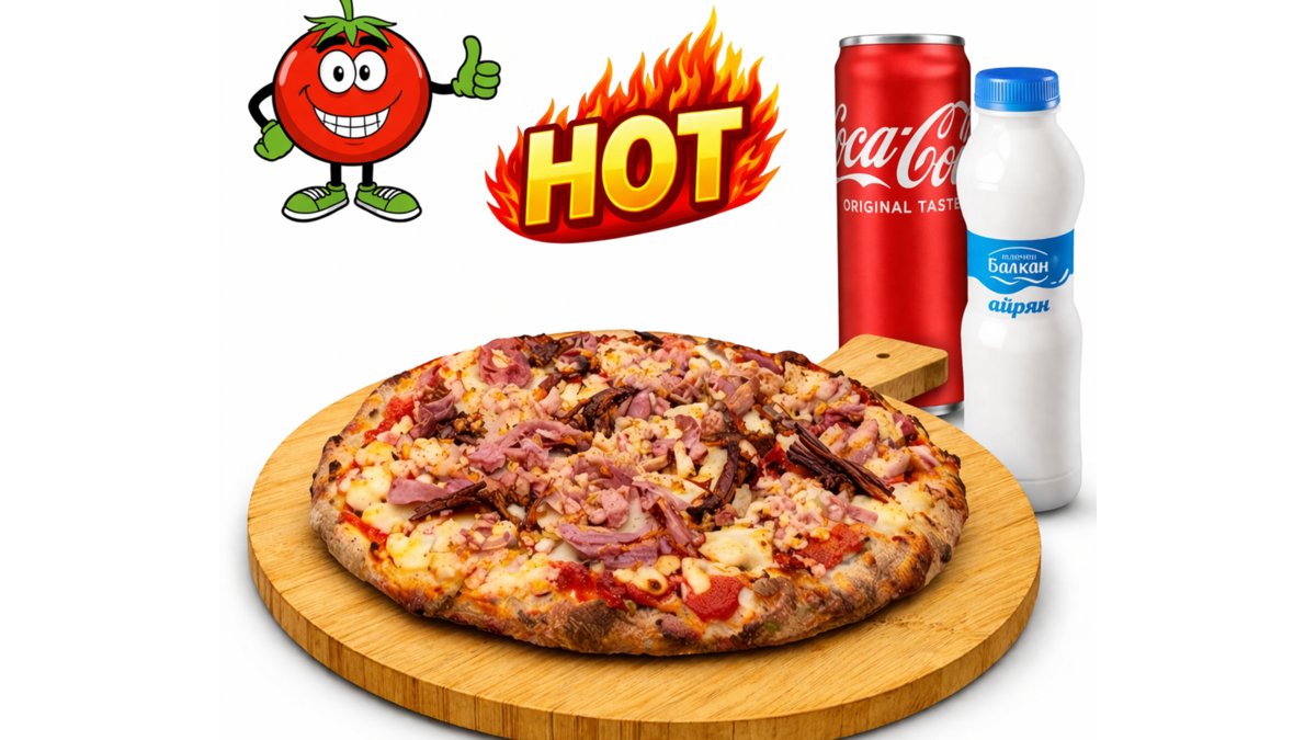 Протеинова пица "3 вида месо" (350 гр.) + 1 бр. напитка
