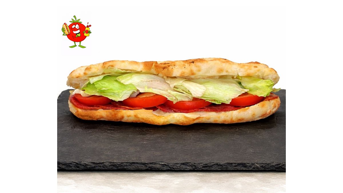 пикантни салами, кашкавал, чушка халапеньос, домат, маруля