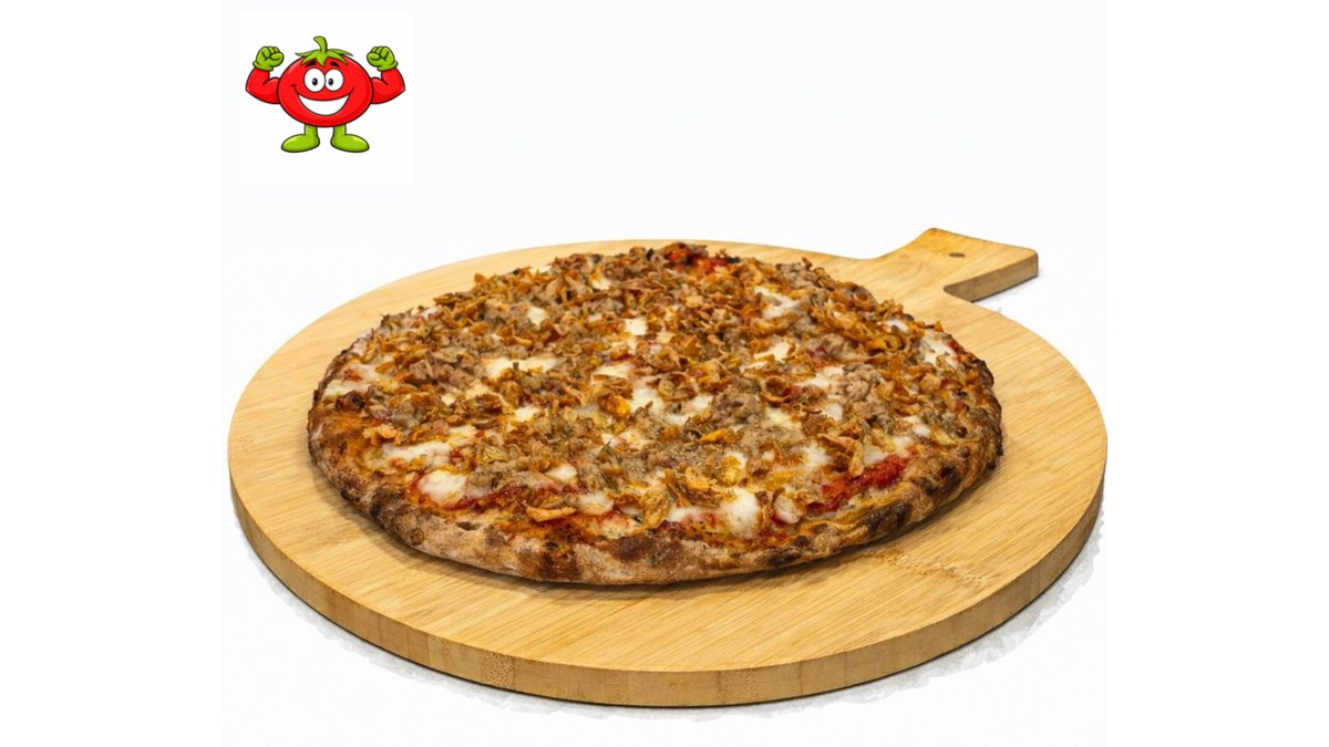 Протеинов пълнозърнест блат с 4 вида семена, доматен сос, филе от риба тон, пържен лук, моцарела Фиор ди Лате