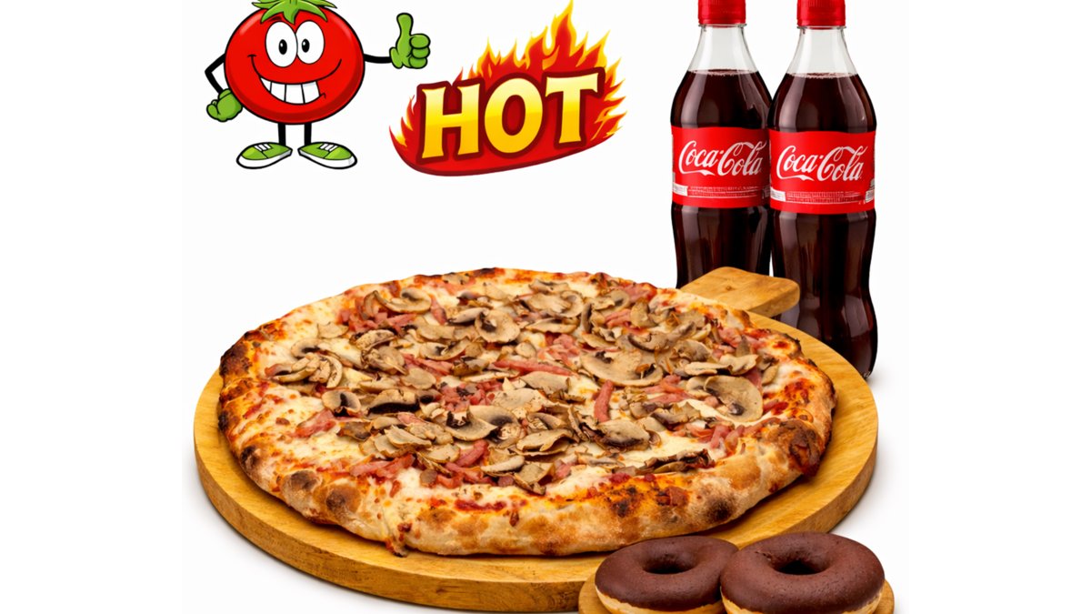 Фамилна пица (850гр)+ 2 бр Кока Кола 500 мл + 2 бр Понички
