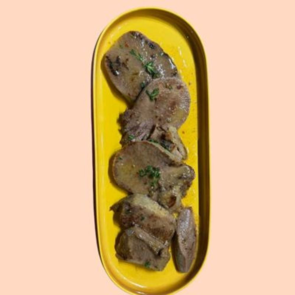 Телешки език с масло, чесън и мащерка