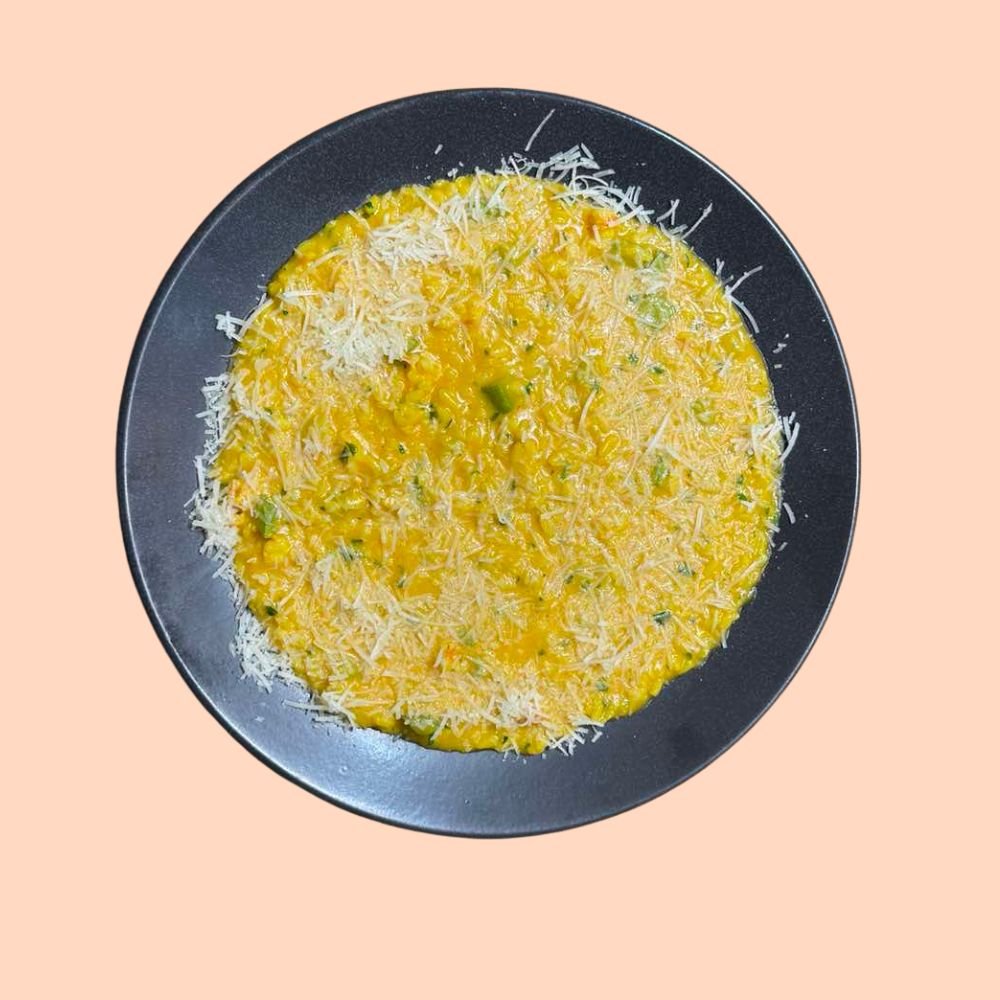 Ризото с крем от тиквички, шафран, скариди и грана падано Dop