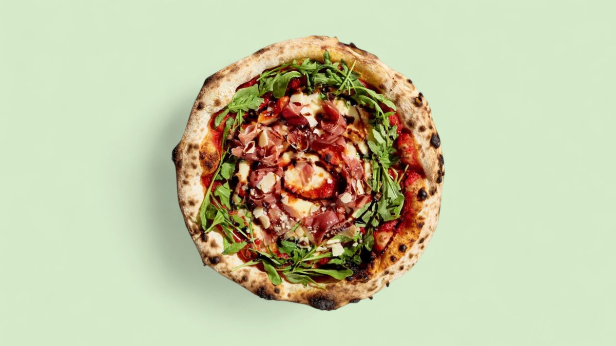 Доматен сос, моцарела, крудо, рукола, балсамико глейз, грана падано