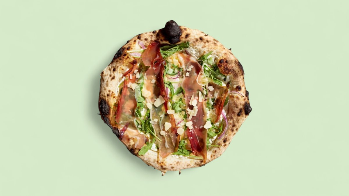 Спек, рикота, моцарела, рукола, червен лук