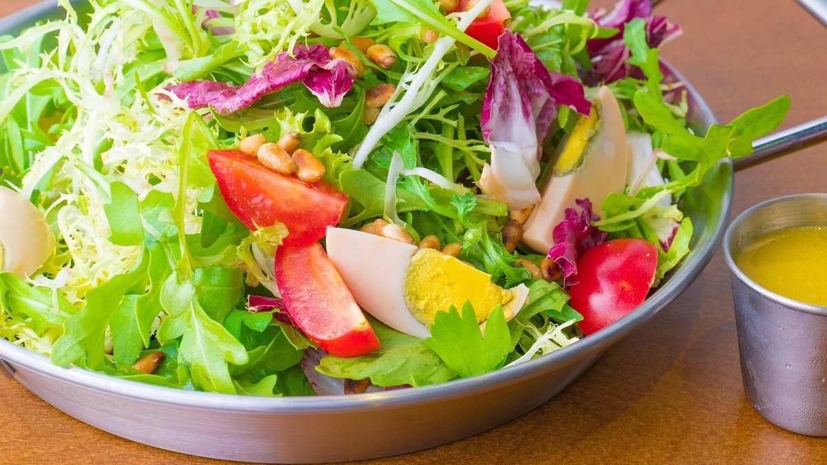 Айсберг, микс зелени салати с рукола, яйце, чери, пармезан, балсамико, зехтин Екстра върджин 300 г