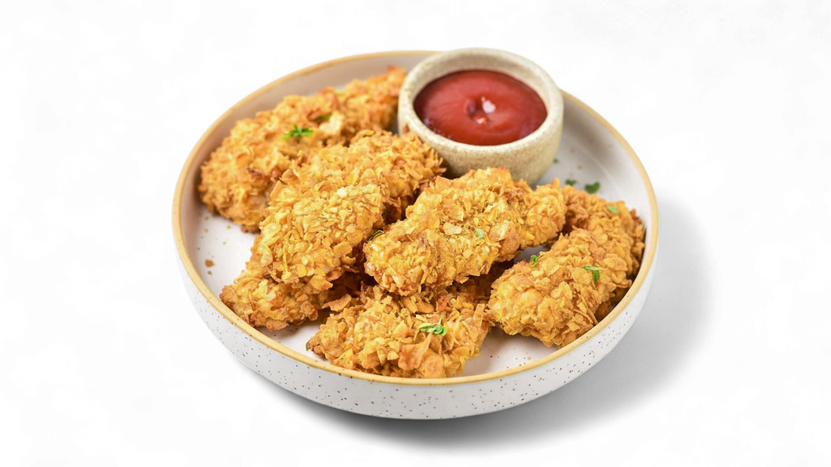 Хрупкави пилешки филенца с корнфлейкс + сос по избор