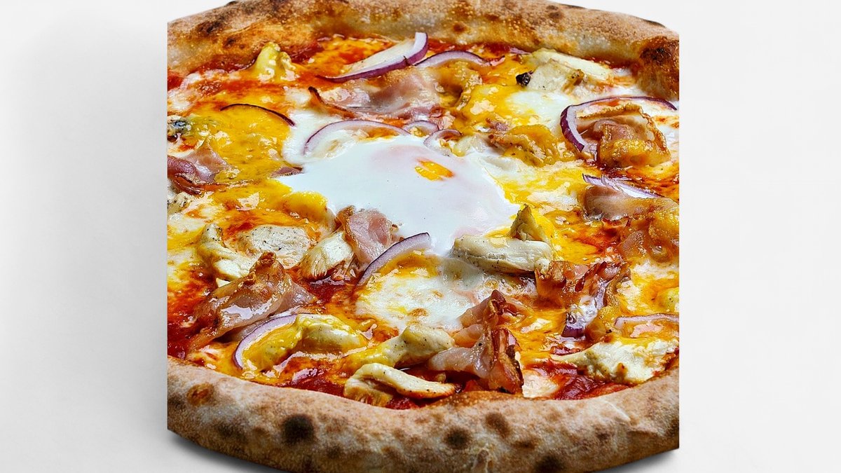 Доматен сос Мутти, Моцарела, Пилешко Филе, Панчета, Чедър, Червен лук, Яйце