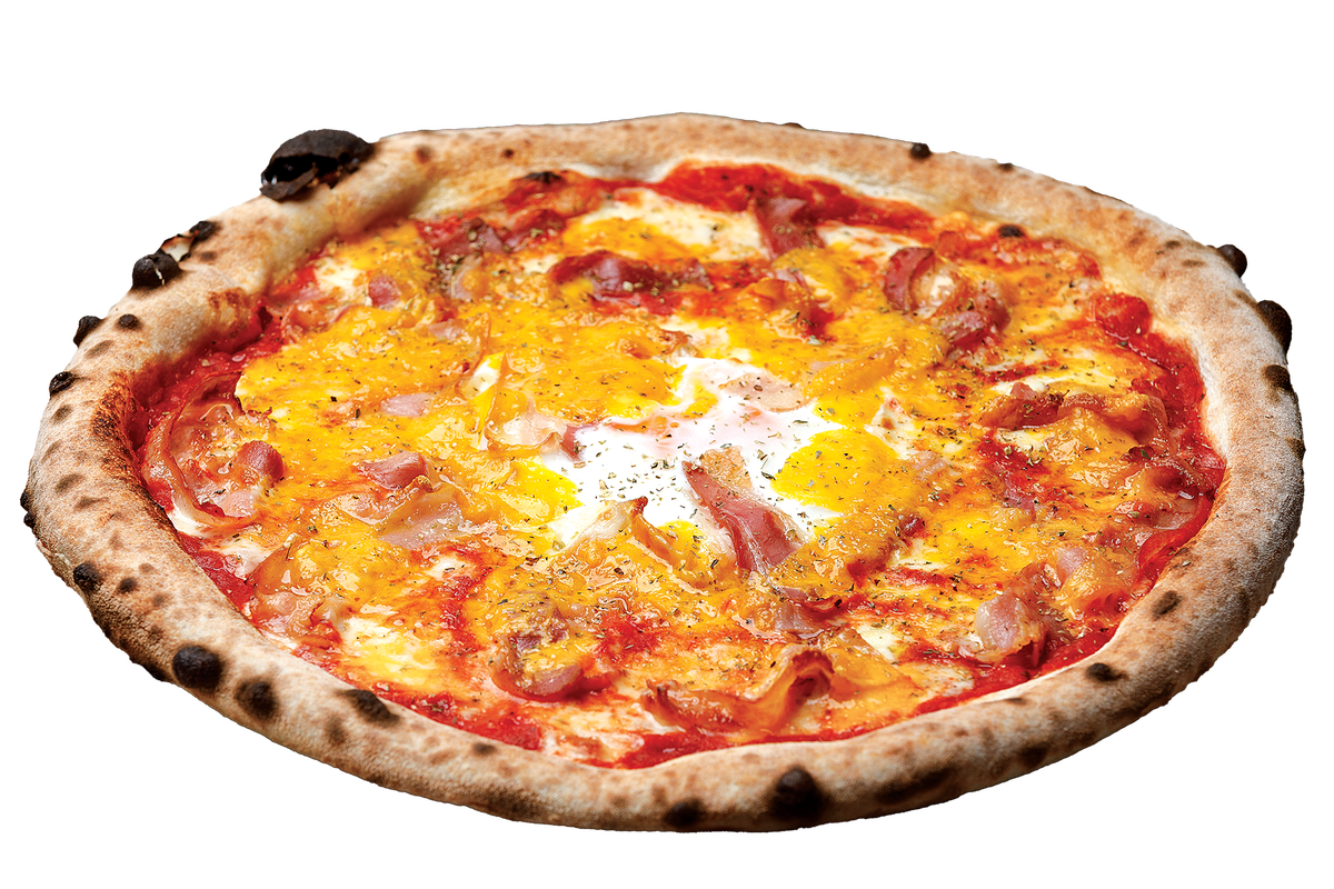 моцарела фиор ди лате, италиански бекон панчета, Пармезан, яйце, черен пипер