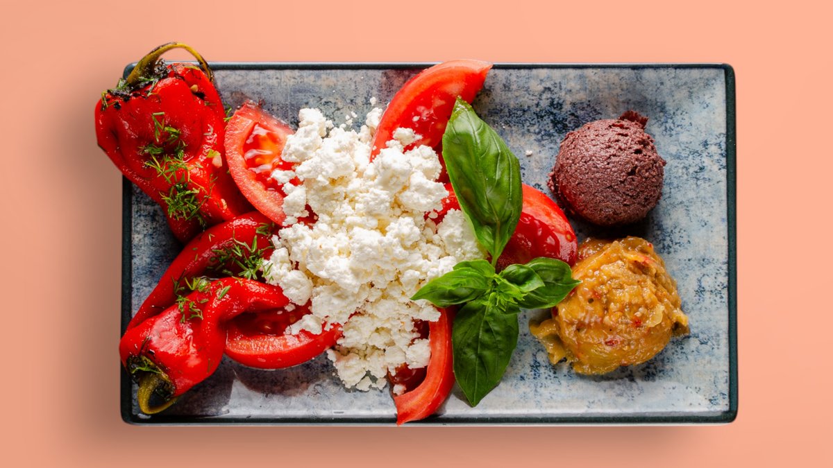 печени чушки, домати, краставици, сирене пресен лук, магданоз 400гр