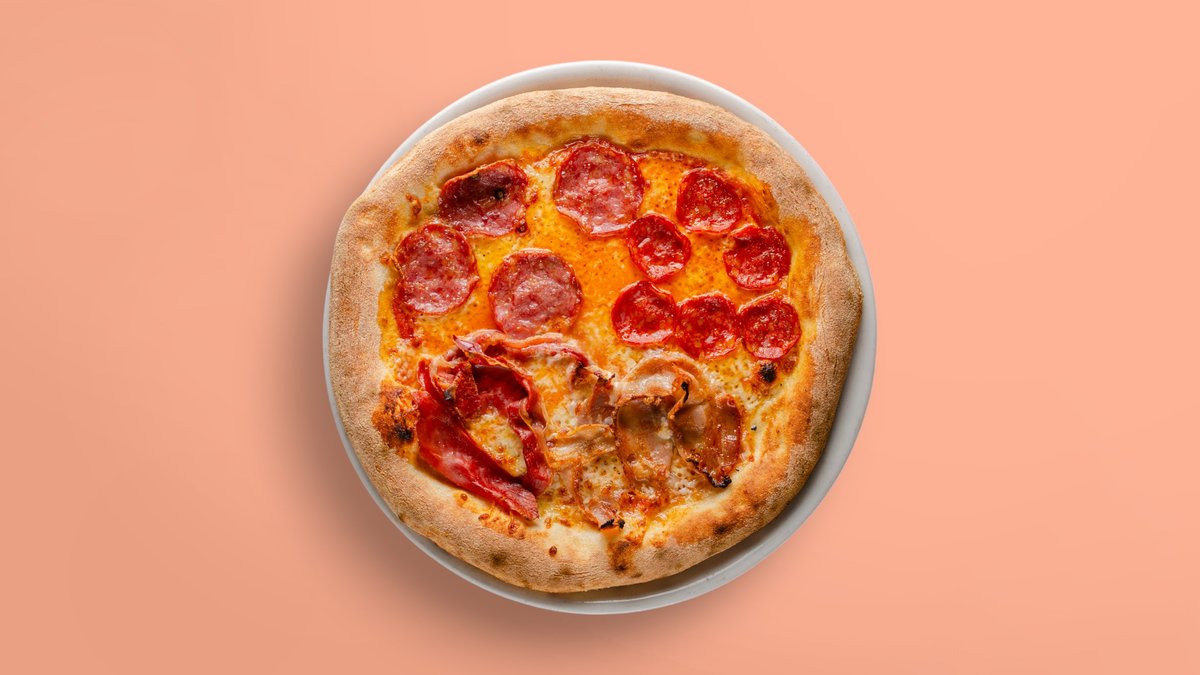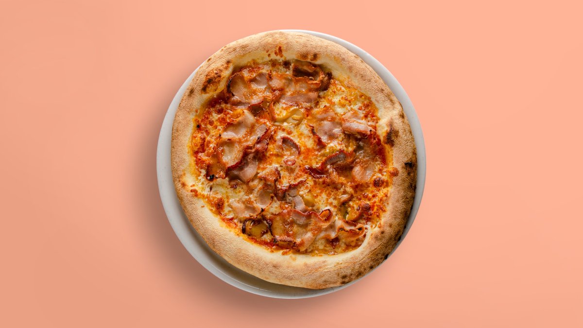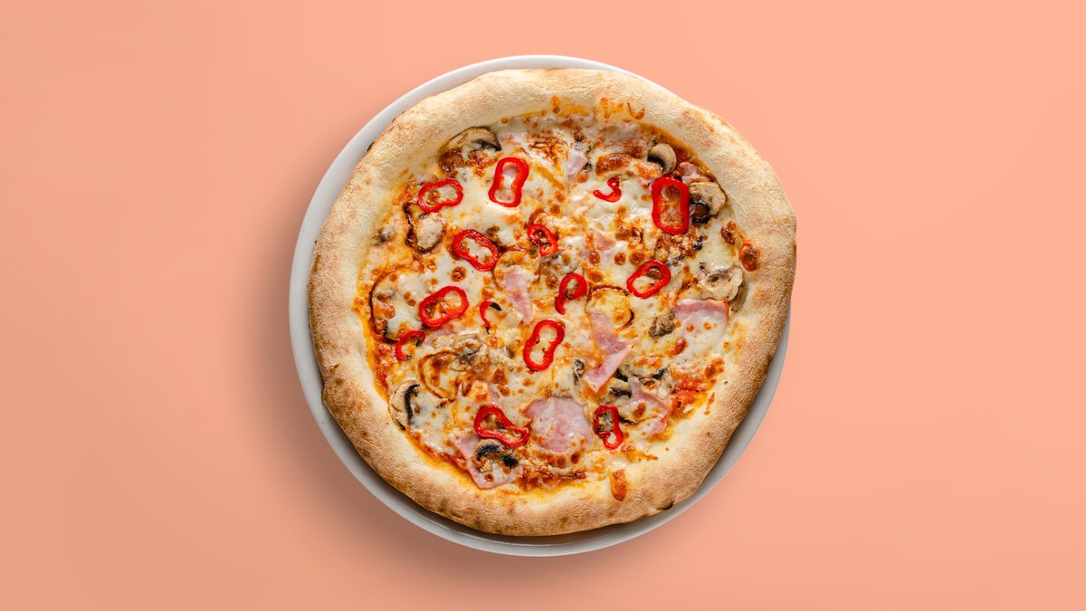 доматен сос, моцарела, гъби, шунка, бекон, чушки 500гр
