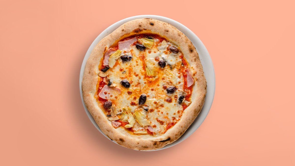 доматен сос, шунка, артишок, маслини, гъби и моцарела 450гр