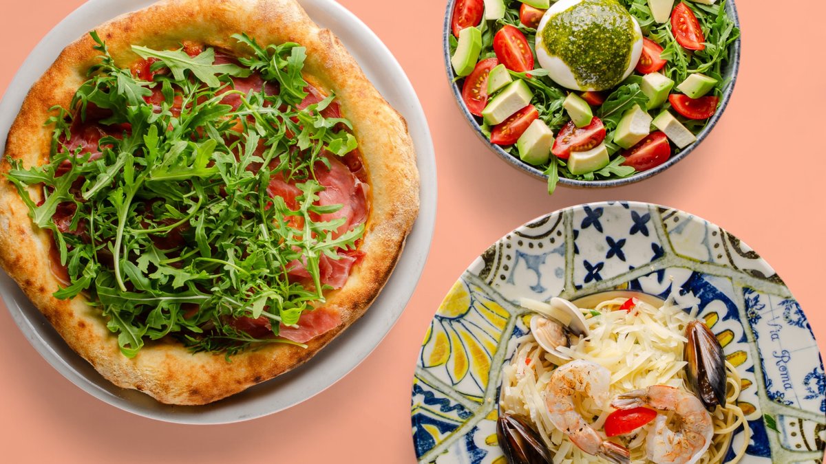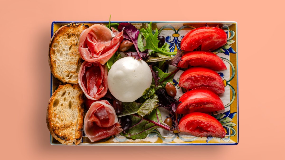 доматен сос, брезола, биволска моцарела, чери, рукола и пудра от черен трюфел 480гр