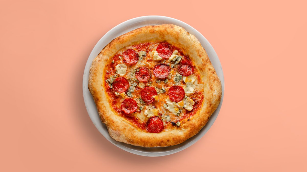 доматен сос, салам пепероне, скаморца, Горгонзола, моцарела 450гр